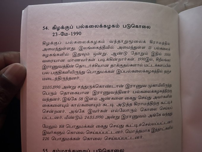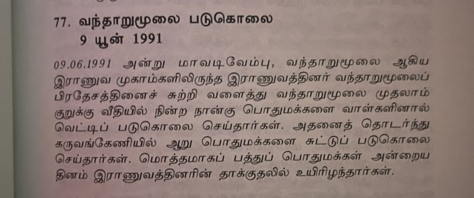 Another instance was the massacre at Othiyamalai during the succeeding months where > 25 Tamils were killed by the army.