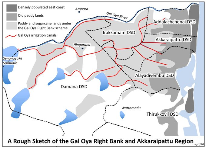 From December 1st to 15th, 1984: the area surrounding the region that connects Mullaithivu to Trincomalee saw three well-planned massacres by Sri Lankan Army & home guards. The reason behind the massacres was to drive out the local Tamil population from their villages, for colonization of Sinhala settlers. The Mullaitivu and Trincomalee Districts were traditional Tamil farming & fishing villages for generations. It was interspersed with small and large farms owned by Tamils or held on long leases by Tamil-owned business enterprises. Among the large farms were: Navalar farm, Ceylon Theatre's farm, Kent farm, Railway Group Farm, Postmaster Group Farm, and Dollar Farm. Kent and Dollar farms were later used to rehabilitate the hill country victims of the 1977 anti-Tamil pogrom. Throughout the 1980s, SL government conspired with many schemes to grab the lands of Tamils & settle Sinhalese people. Deliberate & coordinated attacks on Tamil villages began after the 1983 Anti-Tamil pogrom, >3000 Tamils were wiped out & 100s to 1000s were forced to flee. Yan Oya settlement was one such, aimed at breaking the territorial contiguity of Tamil Eelam, between Trincomalee & Mullaitivu. It was administered by SL minister of Sinhala ethnicity Lalith Athulathmudali backed by President J.R. Jayewardene.Nov 1984, alleging Tamils as terrorists, Superintendent of Police in Vauvuniya Arthur Herath raided & drove away residents of Kent and Dollar Farm. Subsequently, Sinhala ex-convicts and prisoners were settled there and armed. Next, the nearby villages of Kokkilai, Manal Aru, Kokkuthoduvai, Alampil, Nayaru & Kumulamunai were targeted in Mullaitivu District. Historic Tamil villages of Amaravayal & Thennamarwadi in Trincomalee were also attacked with the objective of ethnic cleansing of Tamils.
